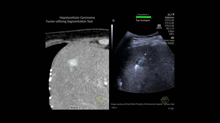 Эта технология в реальном режиме времени позволяет суммировать УЗ-изображения с диагностическими изображениями, полученные при использовании других диагностических методов визуализации (КТ, МРТ к примеру) для повышения надежности визуализации при сложных интервенционных процедурах.