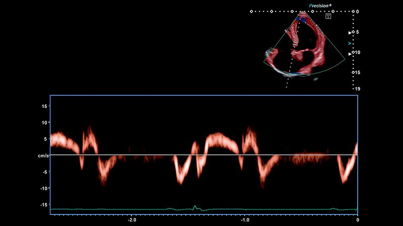 Высокочувствительный цветной допплеровский датчик системы отображает небольшие струи или потоки, направленные вниз к легочным венам, с выдающимся пространственным и временным разрешением.